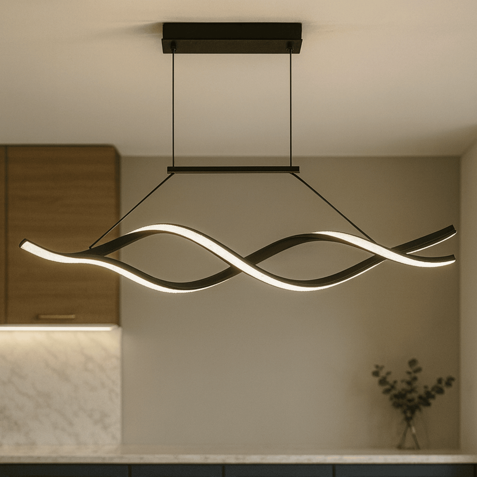 SKU: Tao-NK301Elegant dhe minimalist, ky lluster LED në ngjyrë të zezë është perfekt për ambiente moderne dhe stil bashkëkohor. Forma valëzuese krijon një ndriçim të bukur dhe të shpërndarë në mënyrë perfekte mbi tavolinë.