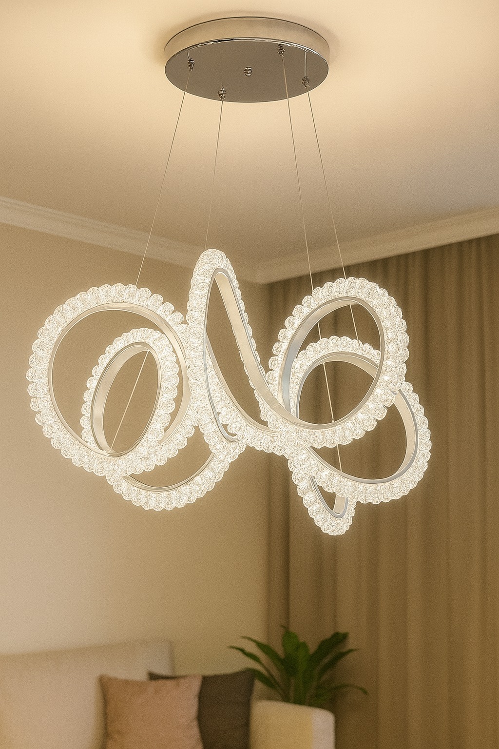 SKU: TO-4040Kjo lluster LED me dizajn unik dhe detaje elegante është zgjedhja ideale për të krijuar një ambient luksoz dhe të rafinuar në shtëpinë tuaj. Forma artistike me rrathë të ndërthurur dhe përfundimi dekorativ i japin një pamje shumë të veçantë dhe moderne.