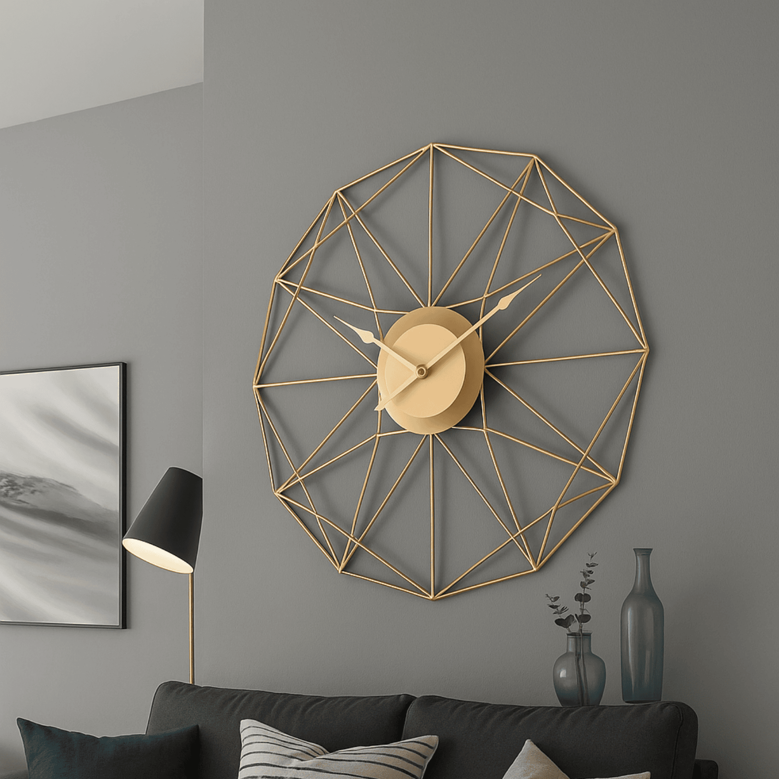 SKU: TO-O200Kjo orë muri me dizajn unik dhe modern është perfekte për të dekoruar ambientin tuaj me stil. Me strukturë gjeometrike në ngjyrë gold dhe pamje elegante, ajo nuk është vetëm orë, por edhe element dekorativ që bie menjëherë në sy.