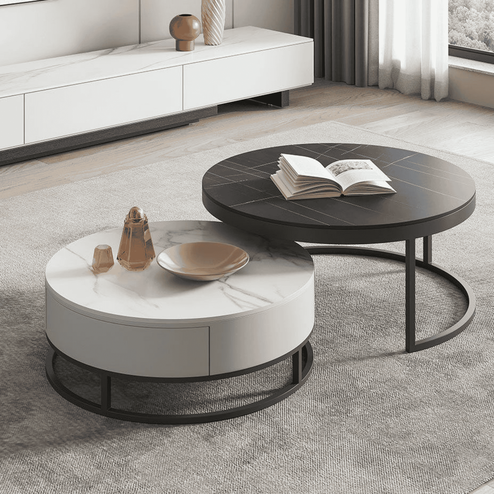 SKU: TO-T3006Shto luks dhe funksionalitet në sallonin tënd me këtë set tavolinash moderne 2 copë, që kombinon dizajnin elegant me praktikën e përditshme.